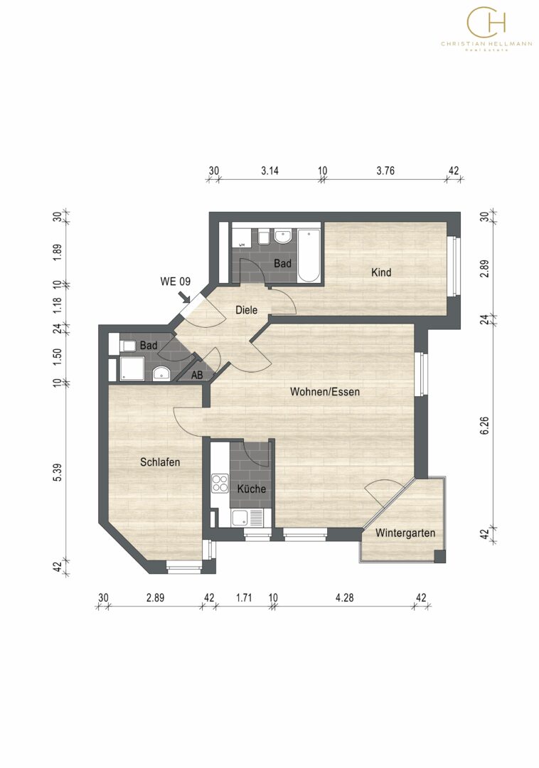 - WE09: 78,81 m², 2.OG, 3 Zimmer, Küche, 2 Badezimmer, Wintergarten