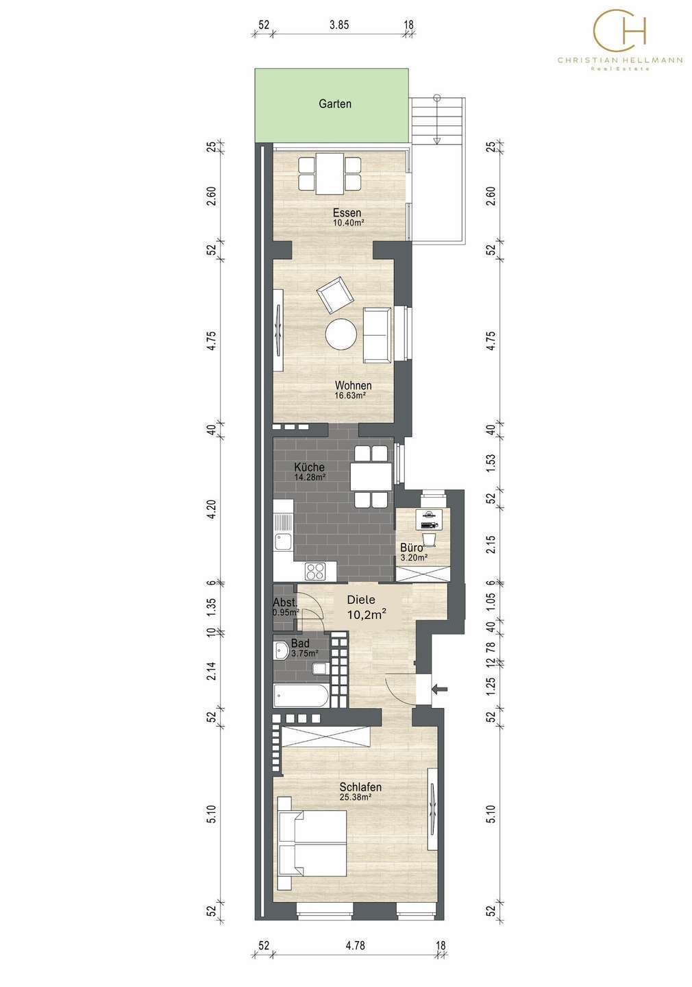 Alle Angaben sind ohne Gewähr und basieren ausschließlich auf Informationen, die uns von unserem Auftraggeber übermittelt wurden. Wir übernehmen keine Gewähr für die Vollständigkeit, Richtigkeit und Aktualität dieser Angaben. Irrtum und Zwischenverkauf vorbehalten. Die Grunderwerbssteuer, Notar- und Grundbuchkosten sind vom Käufer zu tragen. Der Maklervertrag mit uns kommt entweder durch schriftliche Vereinbarung oder durch die Inanspruchnahme unserer Maklertätigkeit auf der Basis des Objekt-Exposees und seiner Bedingungen zustande. Sollte das von uns nachgewiesene Objekt bereits bekannt sein, teilen Sie uns dies bitte unverzüglich mit. Die Provision in Höhe von 3,57% des Kaufpreises inkl. 19 % gesetzliche MwSt. ist bei notariellem Vertragsabschluss verdient und fällig und zu diesem Zeitpunkt vom Käufer an die Firma CHRISTIAN HELLMANN Real Estate zu zahlen. Auch Sie denken aktuell über den Verkauf Ihrer Immobilie nach oder befinden sich mitten im Verkaufsprozess und wünschen unsere Unterstützung? Von der professionellen Immobilienbewertung bis hin zum Kaufvertragsabschluss, das Team von CHRISTIAN HELLMANN Real Estate unterstützt Sie gerne! Kontaktieren Sie uns zu jeder Zeit persönlich, lernen Sie uns kennen oder besuchen Sie uns online unter www.hellmannrealestate.com. Sie möchten keine Angebote mehr verpassen? Folgen Sie uns gerne auch auf Facebook oder Instagram. www.facebook.com/hellmannrealestate/