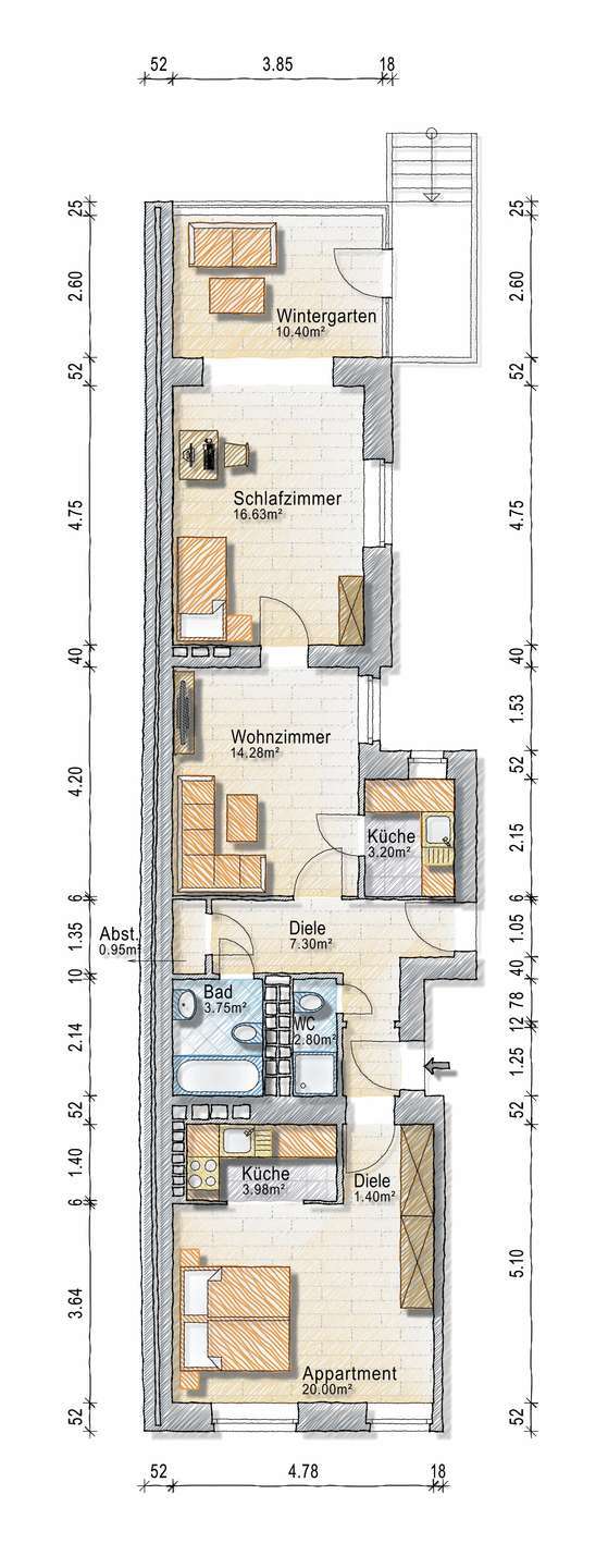 • Ca. 230 m² Gartenfläche zur alleinigen Sondernutzung (Zugang über die Wohnung)
