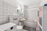 • Badezimmer weiß gefliest, weiße Keramik inkl. Badewanne