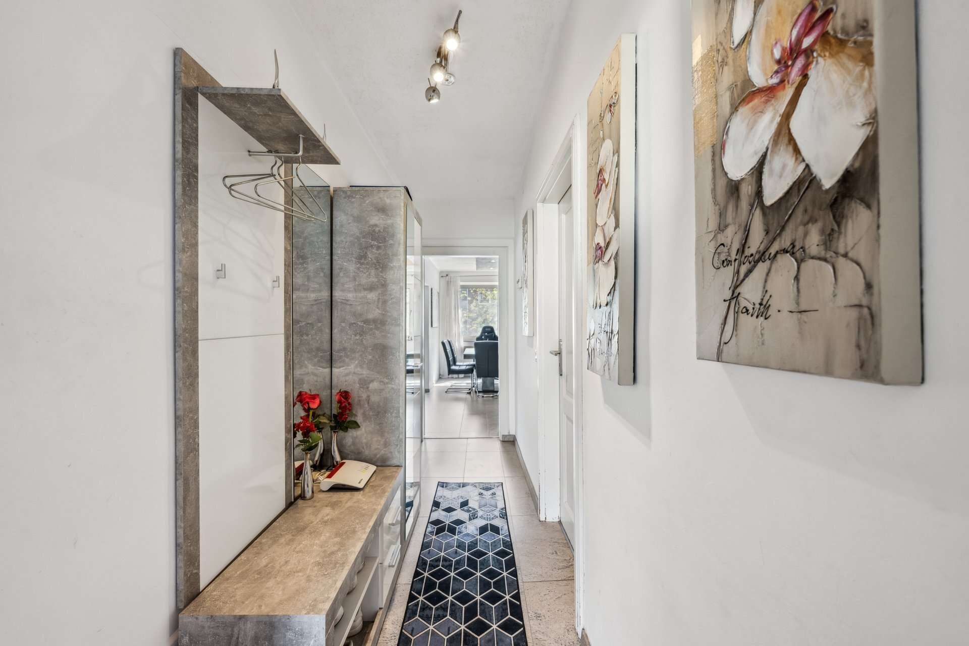 Für Autofahrer ist die Verkehrsanbindung ebenso komfortabel: Über die nahegelegene B8 gelangen Sie in wenigen Minuten auf die A46 und A59 – und damit schnell ins Rheinland, nach Köln, Neuss oder zum Düsseldorfer Flughafen.