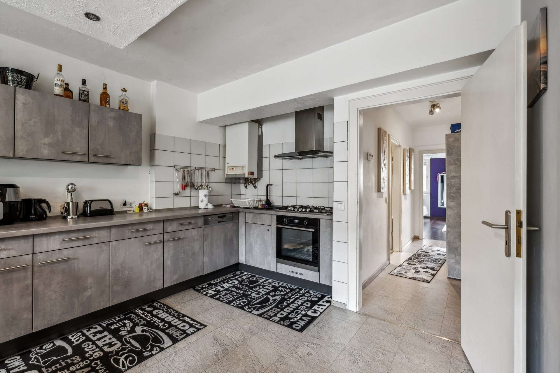 - Voll ausgestattete Einbauküche inklusive Spülmaschine, Gasherd und Dunstabzugshaube (mit Filter)