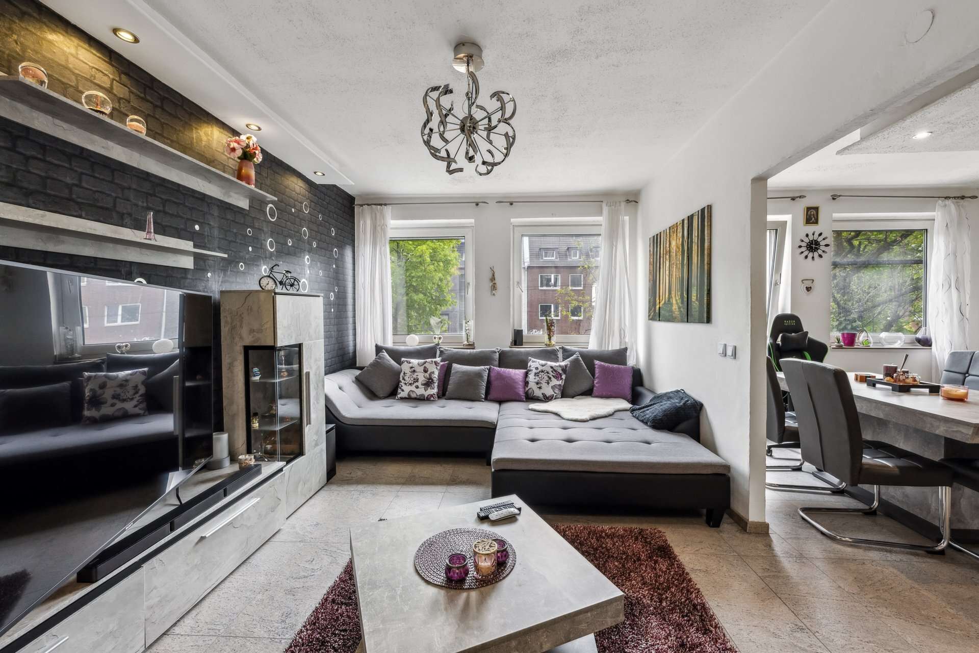 - Heller Wohn- und Essbereich mit Fensterfront zur Straße
