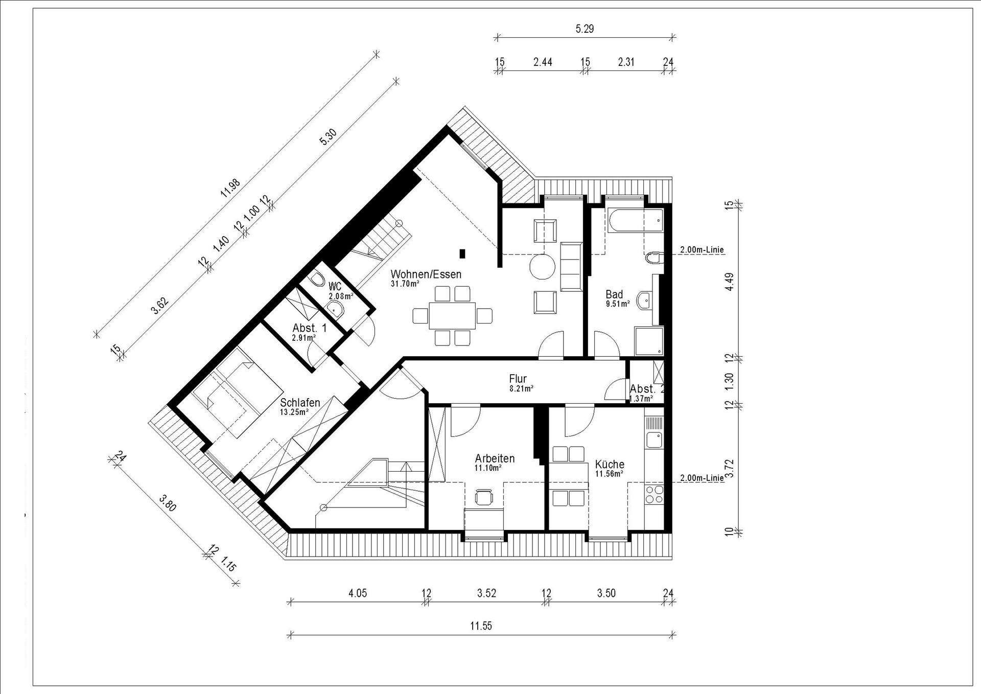 - Integrierter Arbeitsbereich in Wohn-/ Esszimmer