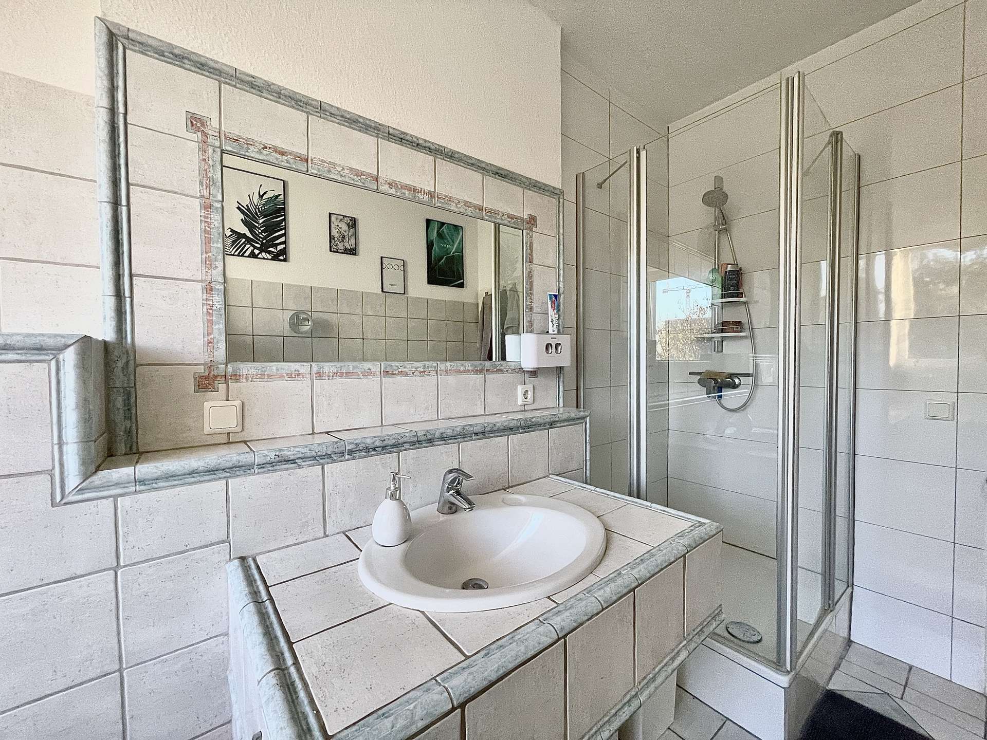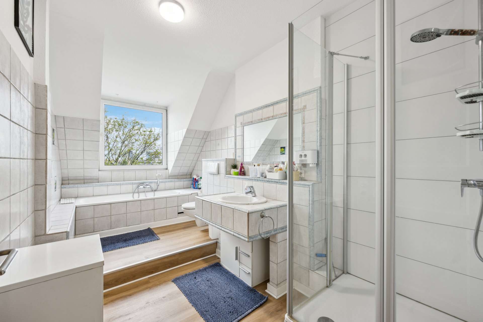 - Großzügiges Badezimmer mit Badewanne, Eckdusche und tollem Weitblick
