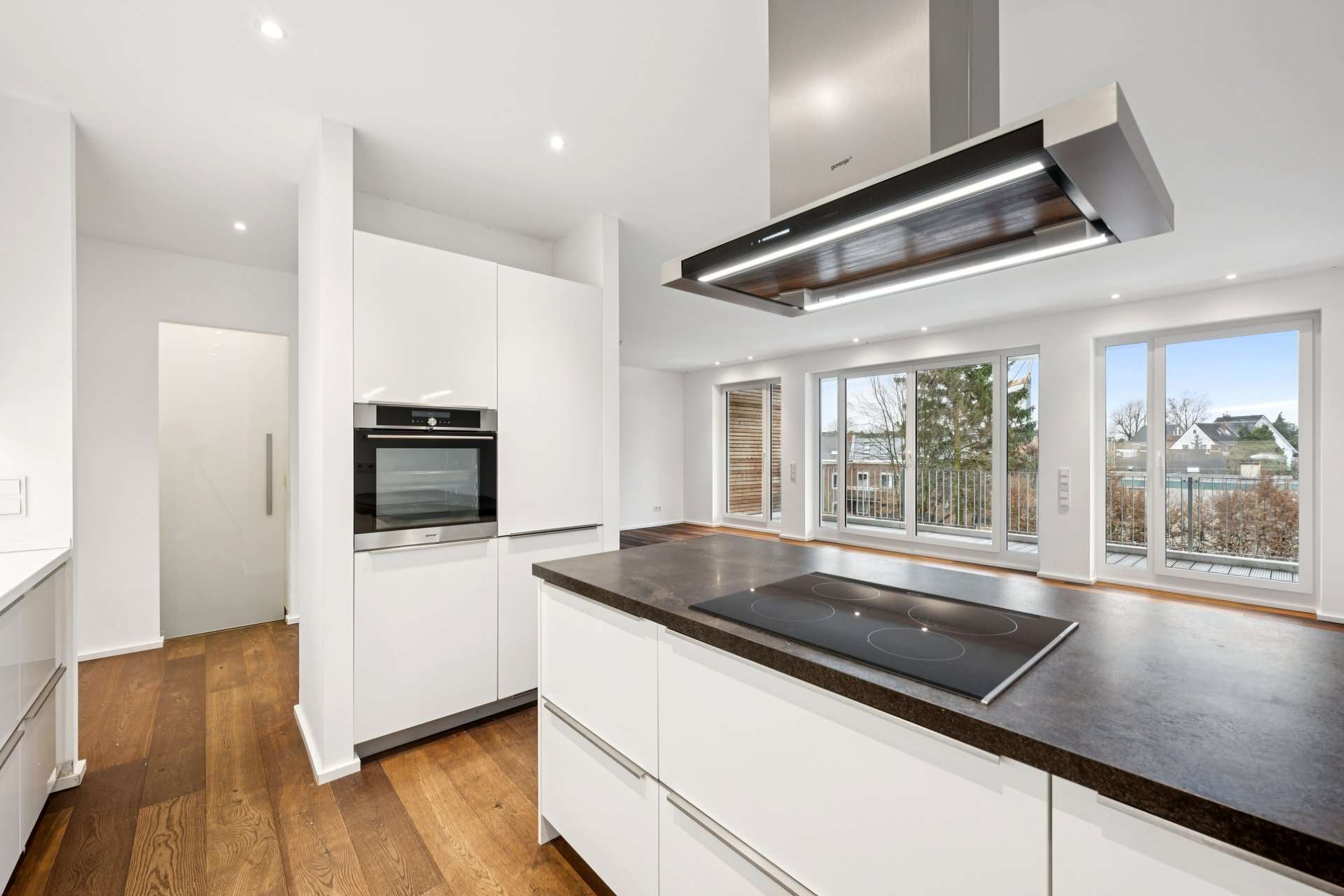 Auf ca. 149,53 m² Wohnfläche (ca. 160,05 m² Wohn-/Nutzfläche) präsentiert sich ein durchdachter Grundriss mit einem repräsentativen Wohn- und Essbereich, der nahtlos in die offene Küche übergeht. Die moderne Einbauküche mit Küchenblock, hochwertigen Einbaugeräten sowie maßgefertigten Schranklösungen fügt sich stilvoll in das Gesamtkonzept ein und bildet den idealen Mittelpunkt für genussvolle Abende und geselliges Beisammensein. Zwei flexibel nutzbare Kinder-, Arbeits- oder Gästezimmer ergänzen das Raumangebot optimal.